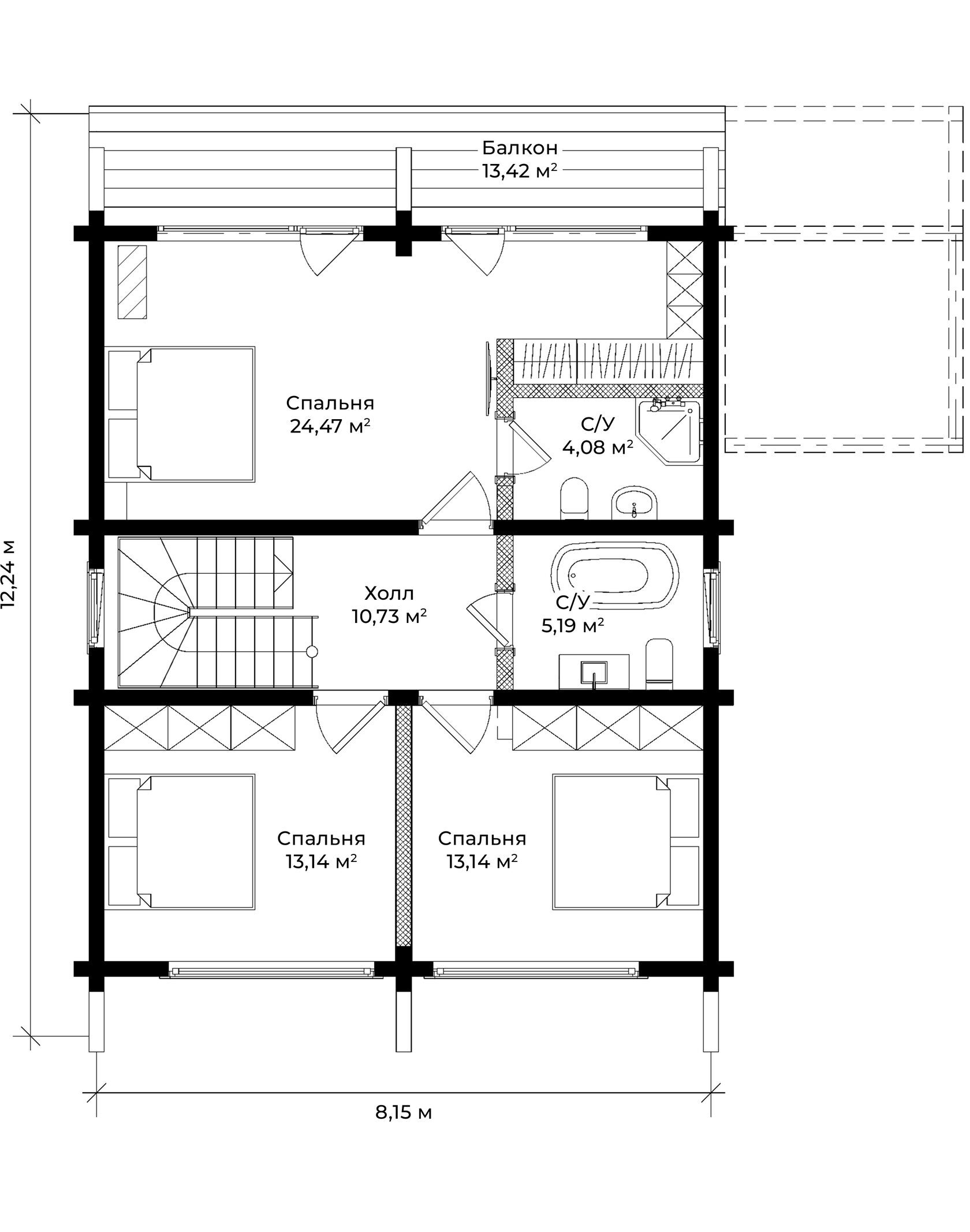 2 этаж — клееный брус премиальный 260 (В)*200 мм